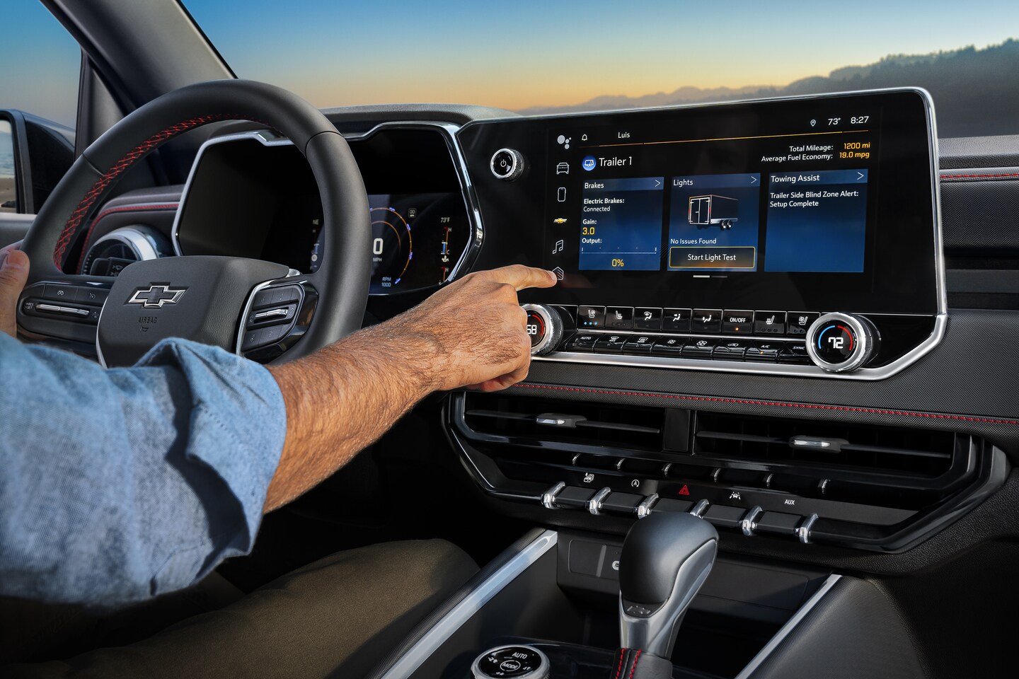 The 2026 Chevy Colorado comes equipped with a heavy-duty trailering package that includes a trailer hitch and seven-pin connector. The available advanced trailering package adds features like an automatic locking rear differential and trailering app for enhanced towing capability and control.