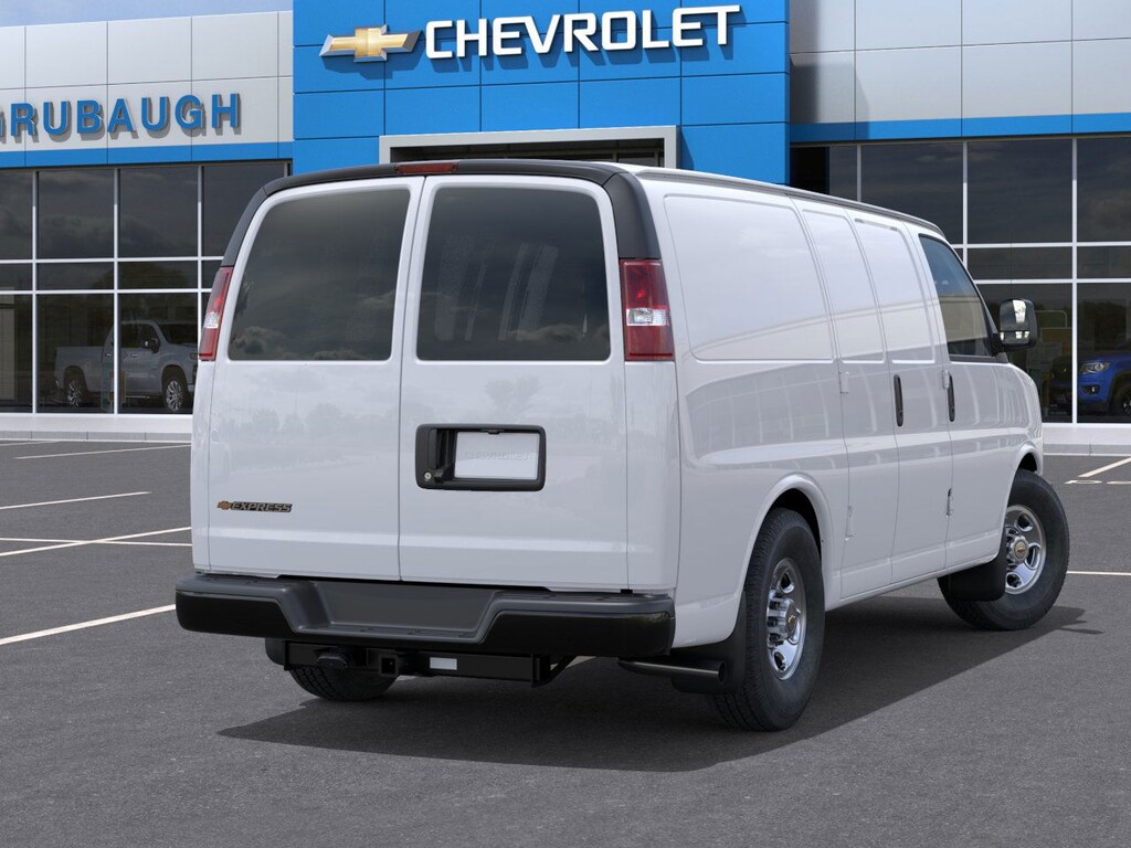 Summit White 2025 Chevrolet Express 2500 Work Van Cargo RWD Automatic with Overdrive 6.6L V8 150 Amp Alternator, 16 x 6.5 Steel Wheels, 2 Speakers, 3.42 Rear Axle Ratio, 4-Wheel Disc Brakes, ABS brakes, Air Conditioning, AM/FM radio, AM/FM Stereo w/MP3 Player, Cruise Control, Delay-off headlights, Driver & Front Passenger High-Back Bucket Seats, Driver Convenience Package, Driver door bin, Driver's Seat Mounted Armrest, Dual front impact airbags, Dual front side impact airbags, Electronic Stability Control, Engine Cover Console w/Swing-Out Storage Bin, Exterior Parking Camera Rear, Fixed Rear Door Window Glass, Front & Rear Molded Splash Guards, Front anti-roll bar, Front Bucket Seats, Front Reclining High-Back Bucket Seats, Front wheel independent suspension, Full-Length Black Rubberized-Vinyl Floor Covering, Fully automatic headlights, Heated door mirrors, Heavy-Duty Rear Locking Differential, Heavy-Duty Trailering Equipment, Low tire pressure warning, Occupant sensing airbag, Overhead airbag, Passenger cancellable airbag, Passenger door bin, Passenger seat mounted armrest, Power door mirrors, Power steering, Power windows, Preferred Equipment Group 1WT, Rear Door Glass, Reclining Front Bucket Seats w/Inboard Armrests, Single-Zone Manual Air Conditioning, Tachometer, Tilt Steering Wheel, Traction control, Trip computer, Variably intermittent wipers, Vinyl Seat Trim, Voltmeter.