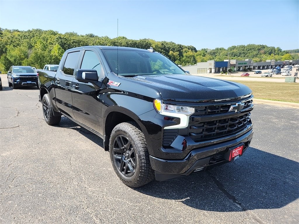 Black 2025 Chevrolet Silverado 1500 RST 4WD 8-Speed Automatic 3.0L I6 8-Speed Automatic, 4WD, Black Leather, 10-Way Power Driver Seat w/Lumbar, 12.3 Multicolor Reconfigurable Digital Display, 120-Volt Bed Mounted Power Outlet, 120-Volt Interior Power Outlet, 2 USB Data Ports, 220 Amp Alternator, 3.23 Rear Axle Ratio, 4-Wheel Disc Brakes, 40/20/40 Front Split-Bench Seat, 6 Speakers, 6-Speaker Audio System, ABS brakes, Air Conditioning, All-Star Edition, Alloy wheels, AM/FM radio: SiriusXM with 360L, Apple CarPlay/Android Auto, Auto High-beam Headlights, Auto-Locking Rear Differential, Automatic Emergency Braking, Automatic temperature control, Bluetooth® For Phone, Brake assist, Bumpers: body-color, Cloth Seat Trim, Color-Keyed Carpeting Floor Covering, Compass, Convenience Package, Convenience Package II, Deep-Tinted Glass, Delay-off headlights, Driver door bin, Driver vanity mirror, Dual Exhaust w/Polished Outlets, Dual front impact airbags, Dual front side impact airbags, Dual Rear USB Ports (Charge Only), Dual-Zone Automatic Climate Control, Electric Rear-Window Defogger, Electronic Cruise Control, Electronic Stability Control, Electronic Transmission Range Selector Shifter, Emergency communication system: OnStar, Engine Block Heater, EZ Lift Power Lock & Release Tailgate, Floor Mounted Center Console, Following Distance Indicator, Forward Collision Alert, Front anti-roll bar, Front Bucket Seats, Front Center Armrest w/Storage, Front dual zone A/C, Front fog lights, Front Frame-Mounted Black Recovery Hooks, Front LED Fog Lamps, Front License Plate Kit, Front Pedestrian Braking, Front reading lights, Front Rubberized Vinyl Floor Mats, Front wheel independent suspension, Fully automatic headlights, HD Rear Vision Camera, HD Surround Vision, Heated door mirrors, Heated Driver & Front Outboard Passenger Seats, Heated front seats, Heated Power-Adjustable Outside Mirrors, Heated Steering Wheel, Heated steering wheel, Heavy-Duty Air Filter, High Capacity Suspension Package, High Gloss Black Mirror Caps, Hill Descent Control, Hitch Guidance, Hitch Guidance w/Hitch View, Illuminated entry, In-Vehicle Trailering System App, Inside Rear-View Mirror w/Tilt, Integrated Trailer Brake Controller, IntelliBeam Automatic High Beam On/Off, Keyless Open & Start, Lane Keep Assist w/Lane Departure Warning, Leather Package, Leather-Appointed Front Seat Trim, LED Cargo Area Lighting, Low tire pressure warning, Manual Tilt/Telescoping Steering Column, Occupant sensing airbag, Off-Road Suspension, OnStar Services Capable, Outside temperature display, Overhead airbag, Overhead console, Panic alarm, Passenger door bin, Passenger vanity mirror, Perimeter Lighting, Power door mirrors, Power driver seat, Power Front Windows w/Driver Express Up/Down, Power Front Windows w/Passenger Express Down, Power Rear Windows w/Express Down, Power Sliding Rear Window w/Rear Defogger, Power steering, Power Sunroof, Power windows, Preferred Equipment Group 1SP, Premium audio system: Chevrolet Infotainment 3 Premium, Premium Bose 7-Speaker Sound System, Radio data system, Radio: Chevrolet Infotainment 3 Premium System, Rear 60/40 Folding Bench Seat (Folds Up), Rear Cross Traffic Braking, Rear Pedestrian Alert, Rear reading lights, Rear Rubberized-Vinyl Floor Mats, Rear step bumper, Rear window defroster, Remote keyless entry, Remote Vehicle Starter System, Safety Package, Security system, Single Outlet Exhaust, SiriusXM w/360L Trial Subscription, Speed control, Speed-sensing steering, Split folding rear seat, Standard Suspension Package, Standard Tailgate, Steering Wheel Audio Controls, Steering wheel mounted audio controls, Tachometer, Teen Driver, Telescoping steering wheel, Theft Deterrent System (Unauthorized Entry), Tilt steering wheel, Tire Pressure Monitoring System, Traction control, Trailer Camera Provisions, Trailer Side Blind Zone Alert, Traile Price includes: $1000 - GM Bonus Cash. Exp. 11/03/2025 $2500 - Che
