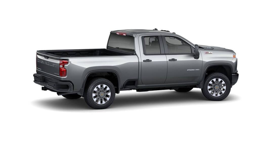 Sterling Gray Metallic 2025 Chevrolet Silverado 2500HD Custom 4WD 10-Speed Automatic 6.6L V8 10-Speed Automatic, 4WD, Black Cloth, 10-Way Power Driver Seat Adjuster w/Lumbar, 120-Volt Bed Mounted Power Outlet, 120-Volt Interior Power Outlet, 170 Amp Alternator, 2-Speed Electronic Shift Transfer Case, 220 Amp Alternator, 3.5 Diagonal Monochromatic Display DIC, 3.73 Rear Axle Ratio, 4-Wheel Disc Brakes, 6 Speakers, 6-Speaker Audio System, 720 Cold-Cranking Amps Heavy-Duty Battery, ABS brakes, Air Conditioning, Alloy wheels, AM/FM radio: SiriusXM with 360L, Apple CarPlay/Android Auto, Auto High-beam Headlights, Auto-Dimming Inside Rear-View Mirror, Black Chevytec Spray-On Bedliner, Black Mirror Caps, Bluetooth® For Phone, Brake assist, Chevrolet Connected Access Capable, Cloth Seat Trim, Color-Keyed Carpeting Floor Covering, Compass, Custom Convenience Package, Custom Value Package, CX Safety Package, Deep-Tinted Glass, Delay-off headlights, Driver door bin, Dual front impact airbags, Dual front side impact airbags, Dual Rear USB Ports (Charge Only), Durabed Pickup Bed, Electric Rear-Window Defogger, Electronic Cruise Control w/Set & Resume Speed, Electronic Stability Control, Emergency communication system: OnStar, EZ Lift Power Lock & Release Tailgate, Front 40/20/40 Split-Bench Seats w/Lockable Storage, Front anti-roll bar, Front Center Armrest w/Storage, Front License Plate Kit, Front reading lights, Front Rubberized Vinyl Floor Mats, Front wheel independent suspension, Fully automatic headlights, Gooseneck/5th Wheel Prep Package, HD Rear Vision Camera, Heated & Auto-Dimming Vertical Trailering Mirrors, Heated door mirrors, Heated Vertical Trailering Mirrors, Hill Descent Control, Illuminated entry, Lane Change Alert w/Side Blind Zone Alert, LED Cargo Area Lighting, LED Smoked Amber Roof Marker Lamps, Locking Tailgate, Low tire pressure warning, Manual Tailgate Function w/No EZ Lift, Manual Tilt-Wheel Steering Column, Occupant sensing airbag, Off-Road Suspension, OnStar Services Capable, Outside temperature display, Overhead airbag, Overhead console, Panic alarm, Passenger door bin, Passenger vanity mirror, Power Door Locks, Power door mirrors, Power Front Windows w/Driver Express Up/Down, Power Front Windows w/Passenger Express Down, Power Rear Windows w/Express Down, Power steering, Power windows, Preferred Equipment Group 1CX, Premium audio system: Chevrolet Infotainment 3, Push Button Start, Radio: Chevrolet Infotainment 3 System, Rear 60/40 Folding Bench Seat (Folds Up), Rear Cross Traffic Alert, Rear reading lights, Rear Rubberized Vinyl Floor Mats, Rear step bumper, Remote Keyless Entry, Remote keyless entry, Remote Vehicle Starter System, SiriusXM w/360L Trial Subscription, Speed control, Split folding rear seat, Standard Tailgate, Suspension Package, Tachometer, Tilt steering wheel, Traction control, Trip computer, Turn signal indicator mirrors, Ultrasonic Front & Rear Park Assist, Unauthorized Entry Theft-Deterrent System, Variably intermittent wipers, Voltmeter, Wheels: 20 10-Spoke Machined Aluminum, Wi-Fi Hotspot Capable, Wireless Phone Projection, Z71 Off-Road Package, 10-Speed Automatic, 4WD, Black Cloth. Price includes: $500 - Chevrolet Consumer Cash Program. Exp. 11/03/2025