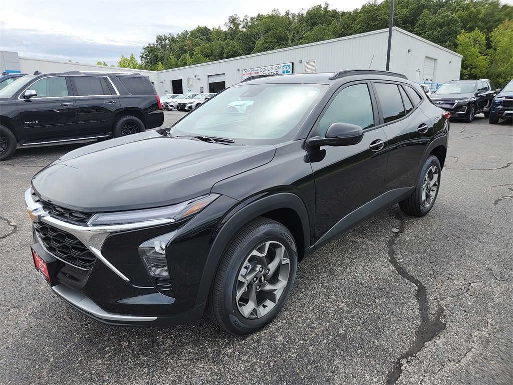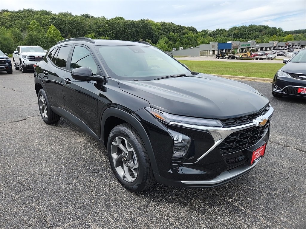 Mosaic Black Metallic 2025 Chevrolet Trax LT FWD 6-Speed Automatic 1.2L Ecotec Turbo DOHC DI w/VVT 2-Way Adjustable Front Head Restraints, 3.50 Final Drive Axle Ratio, 4-Way Manual Front Passenger Seat Adjuster, 4-Wheel Disc Brakes, 6 Speakers, 6-Speaker Audio System Feature, 6-Way Manual Driver Seat Adjuster, ABS brakes, Adaptive Cruise Control, Air Conditioning, Alloy wheels, AM/FM radio: SiriusXM, Auto High-beam Headlights, Automatic temperature control, Brake assist, Bumpers: body-color, Cloth/Evotex Seat Trim, Compass, Delay-off headlights, Driver Confidence Package, Driver door bin, Driver vanity mirror, Dual front impact airbags, Dual front side impact airbags, Electronic Stability Control, Emergency communication system: OnStar One Essentials, Exterior Parking Camera Rear, Front anti-roll bar, Front Bucket Seats, Front Center Armrest, Front Doors Keyless Open, Front reading lights, Front wheel independent suspension, Fully automatic headlights, Heated Driver & Front Passenger Seats, Heated Power-Adjustable Outside Mirrors, Heated Steering Wheel, Illuminated entry, Lane Change Alert w/Side Blind Zone Alert, License Plate Front Mounting Package, Low tire pressure warning, LT Convenience Package, Occupant sensing airbag, Outside temperature display, Overhead airbag, Overhead console, Panic alarm, Passenger door bin, Passenger vanity mirror, Power door mirrors, Power steering, Power windows, Preferred Equipment Group 1LT, Premium audio system: Chevrolet Infotainment 3, Radio data system, Radio: AM/FM Stereo Audio System, Rear Cross-Traffic Alert, Rear Park Assist, Rear window defroster, Rear window wiper, Remote keyless entry, Security system, SiriusXM Trial Subscription, Speed control, Split folding rear seat, Spoiler, Steering wheel mounted audio controls, Tachometer, Telescoping steering wheel, Tilt steering wheel, Traction control, Trip computer, Variably intermittent wipers, Wheels: 17 Gray-Painted Machined Aluminum, Wrapped Steering Wheel.