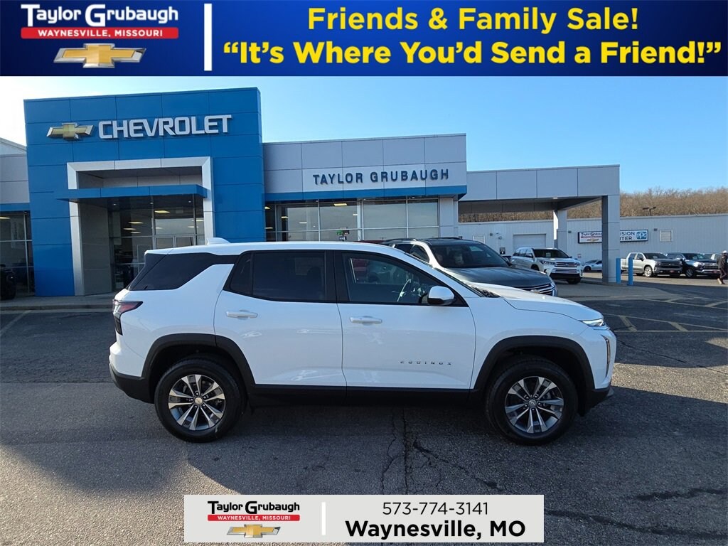 Summit White 2026 Chevrolet Equinox LT AWD 8-Speed Automatic 1.5L DOHC Equinox LT, 4D Sport Utility, 1.5L DOHC, 8-Speed Automatic, AWD, Summit White, Black Cloth, 2-Way Power Driver Lumbar Control Seat Adjuster, AutoSense Hands-Free Power Programmable Liftgate, Cabin Humidity & Windshield Sensor, Convenience Package II, Driver 8-Way Power Seat Adjuster, Dual-Zone Automatic Climate Control, Evotex Seat Trim, Heated Wiper Park, Intermittent Front Rain-Sensing Wipers, Navigation System, Overhead Sunglass Storage, Programmable Universal Home Remote, Wireless Phone Charging for Portable Devices, 3.47 Final Drive Axle Ratio, 4-Wheel Disc Brakes, 6 Speakers, ABS brakes, Air Conditioning, Alloy wheels, AM/FM radio: SiriusXM, Auto High-beam Headlights, Brake assist, Bumpers: body-color, Cloth Seat Trim, Compass, Delay-off headlights, Driver 6-Way Manual Seat Adjuster, Driver door bin, Driver vanity mirror, Dual front impact airbags, Dual front side impact airbags, Electronic Stability Control, Emergency communication system: OnStar and Chevrolet connected services capable, Four wheel independent suspension, Front anti-roll bar, Front Bucket Seats, Front Center Armrest, Front Passenger 4-Way Manual Seat Adjuster, Front reading lights, Fully automatic headlights, Heated door mirrors, Heated Driver & Front Passenger Seats, Heated front seats, Heated steering wheel, Illuminated entry, Low tire pressure warning, Occupant sensing airbag, Outside temperature display, Overhead airbag, Overhead console, Panic alarm, Passenger door bin, Passenger vanity mirror, Power door mirrors, Power steering, Power windows, Premium audio system: Chevrolet Infotainment 3, Radio data system, Radio: 11.3 Diagonal Advanced Color LCD Display, Rear anti-roll bar, Rear reading lights, Rear seat center armrest, Rear window defroster, Rear window wiper, Remote keyless entry, Security system, SiriusXM w/360L Trial Subscription, Speed control, Speed-sensing steering, Split folding rear seat, Spoiler, Steering wheel mounted audio controls, Tachometer, Telescoping steering wheel, Tilt steering wheel, Traction control, Trip computer, Variably intermittent wipers, Wheels: 17 Grazen Metallic Machined-Face Aluminum, Equinox LT, 4D Sport Utility, 1.5L DOHC, 8-Speed Automatic, AWD, Summit White, Black Cloth, 2-Way Power Driver Lumbar Control Seat Adjuster, AutoSense Hands-Free Power Programmable Liftgate, Cabin Humidity & Windshield Sensor, Convenience Package II, Driver 8-Way Power Seat Adjuster, Dual-Zone Automatic Climate Control, Evotex Seat Trim, Heated Wiper Park, Intermittent Front Rain-Sensing Wipers, Navigation System, Overhead Sunglass Storage, Programmable Universal Home Remote, Wireless Phone Charging for Portable Devices.