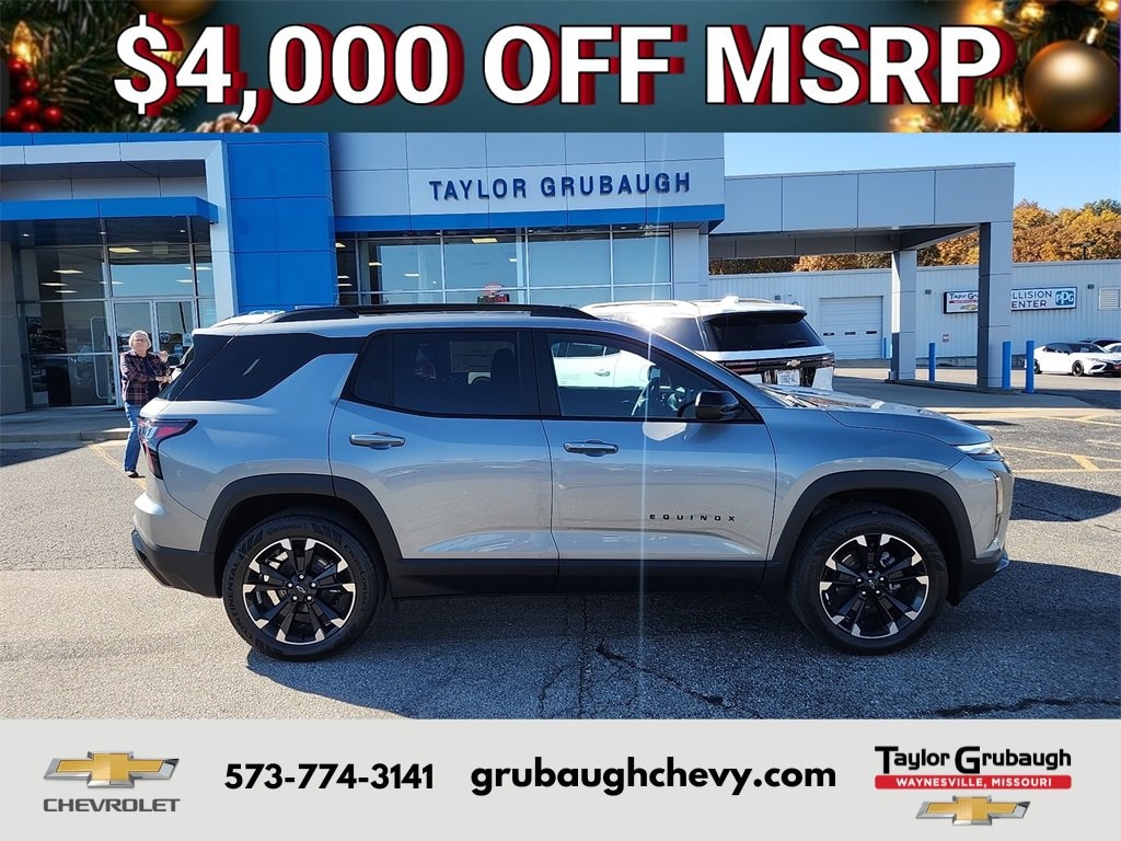 Sterling Gray Metallic 2026 Chevrolet Equinox RS FWD CVT 1.5L DOHC Equinox RS, 4D Sport Utility, 1.5L DOHC, CVT, FWD, Sterling Gray Metallic, Black With Red Accents, 2-Way Power Driver Lumbar Control Seat Adjuster, 4-Wheel Disc Brakes, 5.81 Final Drive Axle Ratio, 6 Speakers, ABS brakes, Air Conditioning, Alloy wheels, AM/FM radio: SiriusXM, Auto High-beam Headlights, Automatic temperature control, Brake assist, Bumpers: body-color, Compass, Convenience Package III, Delay-off headlights, Driver 8-Way Power Seat Adjuster, Driver door bin, Driver vanity mirror, Dual front impact airbags, Dual front side impact airbags, Electronic Stability Control, Emergency communication system: OnStar and Chevrolet connected services capable, Evotex Seat Trim, Four wheel independent suspension, Front anti-roll bar, Front Bucket Seats, Front Center Armrest, Front dual zone A/C, Front Passenger 2-Way Power Lumbar Seat Adjuster, Front Passenger 4-Way Manual Seat Adjuster, Front Passenger 8-Way Power Seat Adjuster, Front reading lights, Fully automatic headlights, Garage door transmitter, Heated door mirrors, Heated Driver & Front Passenger Seats, Heated front seats, Heated Rear Outboard Seating Positions, Illuminated entry, Low tire pressure warning, Memory Settings, Navigation System, Occupant sensing airbag, Outside temperature display, Overhead airbag, Overhead console, Panic alarm, Passenger door bin, Passenger vanity mirror, Power door mirrors, Power driver seat, Power Dual Glass Panoramic Sliding Sunroof, Power Liftgate, Power steering, Power windows, Premium audio system: Chevrolet Infotainment 3, Radio data system, Radio: 11.3 Diagonal Advanced Color LCD Display, Rain sensing wipers, Rear anti-roll bar, Rear reading lights, Rear seat center armrest, Rear window defroster, Rear window wiper, Remote keyless entry, Security system, SiriusXM w/360L Trial Subscription, Speed control, Speed-sensing steering, Split folding rear seat, Spoiler, Sport steering wheel, Steering wheel mounted audio controls, Tachometer, Telescoping steering wheel, Tilt steering wheel, Traction control, Trip computer, Variably intermittent wipers, Ventilated Driver Seat, Ventilated Front Passenger Seat, Wheels: 19 Carbon Flash Metallic Aluminum, Equinox RS, 4D Sport Utility, 1.5L DOHC, CVT, FWD, Sterling Gray Metallic, Black With Red Accents.