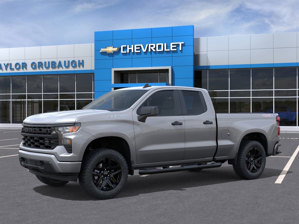 Sterling Gray Metallic 2026 Chevrolet Silverado 1500 Custom 4WD 8-Speed Automatic 2.7L I4 Turbocharged DOHC 16V LEV3-SULEV30 310hp 8-Speed Automatic, 4WD, Black Cloth, 10-Way Power Driver Seat with Lumbar, 120-Volt Bed Mounted Power Outlet, 120-Volt Interior Power Outlet, 3.42 Rear Axle Ratio, 3.5 Monochromatic Display Driver Info Center, 4-Wheel Disc Brakes, 4 Black Round Assist Steps, 40/20/40 Front Split-Bench Seat, 6 Speakers, 6-Speaker Audio System, ABS brakes, Air Conditioning, Alloy wheels, AM/FM radio: SiriusXM, Apple CarPlay/Android Auto, Auto High-beam Headlights, Auto-Locking Rear Differential, Automatic Emergency Braking, Black Chrome Exhaust Tip, Black Name Plates, Black Tailgate CHEVROLET Lettering, Bluetooth® For Phone, Brake assist, Bumpers: body-color, Chevytec Spray-on Black Bedliner, Cloth Seat Trim, Color-Keyed Carpeting Floor Covering, Compass, Custom Convenience Package, Custom Value Package, Dark Essentials Package, Deep-Tinted Glass, Delay-off headlights, Driver door bin, Driver vanity mirror, Dual front impact airbags, Dual front side impact airbags, Dual Rear USB Ports (charge Only), Electric Rear-Window Defogger, Electronic Cruise Control, Electronic Stability Control, Emergency communication system: OnStar, EZ Lift Power Lock and Release Tailgate, Following Distance Indicator, Forward Collision Alert, Front anti-roll bar, Front Black Bowtie Emblem, Front Center Armrest w/Storage, Front Frame-Mounted Black Recovery Hooks, Front License Plate Kit, Front Pedestrian Braking, Front reading lights, Front Rubberized Vinyl Floor Mats, Front wheel independent suspension, Fully automatic headlights, HD Rear Vision Camera, Heated door mirrors, High Capacity Suspension Package, Hitch Guidance, Illuminated entry, Integrated Trailer Brake Controller, IntelliBeam Automatic High Beam on/Off, Lane Keep Assist with Lane Departure Warning, LED Cargo Area Lighting, Low tire pressure warning, Manual Tilt Wheel Steering Column, Occupant sensing airbag, OnStar Services Capable, Outside temperature display, Overhead airbag, Overhead console, Panic alarm, Passenger door bin, Passenger vanity mirror, Power door mirrors, Power driver seat, Power Front Windows with Driver Express Up/Down, Power Front Windows with Passenger Express Down, Power Rear Windows with Express Down, Power steering, Power windows, Preferred Equipment Group 1CX, Premium audio system: Chevrolet Infotainment 3, Radio data system, Radio: Chevrolet Infotainment 3 System, Rear 60/40 Folding Bench Seat (folds Up), Rear reading lights, Rear Rubberized-Vinyl Floor Mats, Rear step bumper, Rear Wheelhouse Liners, Rear window defroster, Remote Keyless Entry, Remote keyless entry, Remote Vehicle Starter System, Security system, SiriusXM Trial Subscription, Speed control, Speed-sensing steering, Split folding rear seat, Standard Tailgate, Tachometer, Teen Driver, Theft Deterrent System (unauthorized Entry), Tilt steering wheel, Tire Pressure Monitoring System, Traction control, Trailering Package, Trip computer, Turbomax Blackout Package, Variably intermittent wipers, Voltmeter, Wheels: 20 x 9 Bright Silver Painted Aluminum, Wheels: 20 x 9 High Gloss Black Painted Aluminum, Wi-Fi Hot Spot Capable, 8-Speed Automatic, 4WD, Black Cloth. Price includes: $1000 - Chevrolet Select Market Bonus Cash. Exp. 01/02/2026 $1000 - GM Bonus Cash. Exp. 01/02/2026 $3000 - Chevrolet Consumer Cash Program. Exp. 01/02/2026