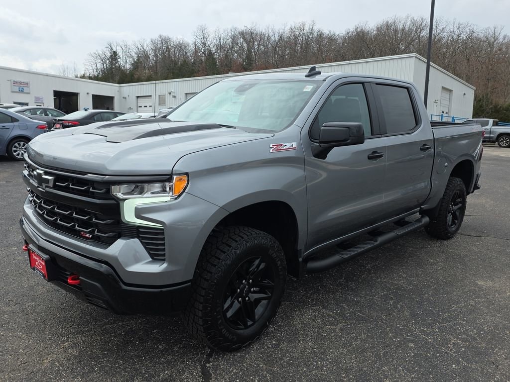 Sterling Gray Metallic 2026 Chevrolet Silverado 1500 LT Trail Boss 4WD 10-Speed Automatic EcoTec3 5.3L V8 Silverado 1500 LT Trail Boss, 4D Crew Cab, EcoTec3 5.3L V8, 10-Speed Automatic, 4WD, Sterling Gray Metallic, Jet Black Cloth, 10-Way Power Driver Seat with Lumbar, 120-Volt Bed Mounted Power Outlet, 120-Volt Interior Power Outlet, Chevytec Spray-on Black Bedliner, Convenience Package, Convenience Package II, Dual Rear USB Ports (charge Only), Dual-Zone Automatic Climate Control, Electric Rear-Window Defogger, Heated Driver and Front Outboard Passenger Seats, Heated Steering Wheel, Heavy-Duty Air Filter, Hill Descent Control, Hitch Guidance, Hitch Guidance with Hitch View, in-Vehicle Trailering System App, Keyless Open and Start, Leather Package, Leather-Appointed Front Seat Trim, LED Cargo Area Lighting, Manual Tilt/Telescoping Steering Column, Power Sliding Rear Window with Rear Defogger, Premium Bose 7-Speaker Sound System, Protection Package, Rear Wheelhouse Liners, Remote Vehicle Starter System, Suspension Package, Theft Deterrent System (unauthorized Entry), Trailering Package, Universal Home Remote, Up-Level Rear Seat with Storage Package, Wrapped Steering Wheel, 12.3 Multicolor Reconfigurable Digital Display, 2 USB Data Ports, 220 Amp Alternator, 4-Wheel Disc Brakes, 4 Black Round Assist Steps, 40/20/40 Front Split-Bench Seat, 6 Speakers, 6-Speaker Audio System, ABS brakes, Air Conditioning, All-Weather Floor Liner, Alloy wheels, AM/FM radio: SiriusXM with 360L, Apple CarPlay/Android Auto, Auto High-beam Headlights, Auto-Locking Rear Differential, Automatic Emergency Braking, Automatic temperature control, Bluetooth® For Phone, Brake assist, Cloth Seat Trim, Color-Keyed Carpeting Floor Covering, Compass, Deep-Tinted Glass, Delay-off headlights, Driver door bin, Driver vanity mirror, Dual front impact airbags, Dual front side impact airbags, Electronic Cruise Control, Electronic Stability Control, Electronic Transmission Range Selector Shifter, Emergency communication system: OnStar, EZ Lift Power Lock and Release Tailgate, Floor Mounted Center Console, Following Distance Indicator, Forward Collision Alert, Front anti-roll bar, Front Bucket Seats, Front Center Armrest w/Storage, Front dual zone A/C, Front fog lights, Front LED Fog Lamps, Front Pedestrian Braking, Front reading lights, Front wheel independent suspension, Fully automatic headlights, HD Rear Vision Camera, Heated door mirrors, Heated front seats, Heated Power-Adjustable Outside Mirrors, Heated steering wheel, High Gloss Black Mirror Caps, Illuminated entry, Inside Rearview Mirror with Tilt, Integrated Trailer Brake Controller, IntelliBeam Automatic High Beam on/Off, Lane Keep Assist with Lane Departure Warning, Low tire pressure warning, Occupant sensing airbag, OnStar Services Capable, Outside temperature display, Overhead airbag, Overhead console, Panic alarm, Passenger door bin, Passenger vanity mirror, Performance Red Recovery Hooks, Power door mirrors, Power driver seat, Power Front Windows with Driver Express Up/Down, Power Front Windows with Passenger Express Down, Power Rear Windows with Express Down, Power steering, Power windows, Premium audio system: Chevrolet Infotainment 3 Premium, Radio data system, Radio: Chevrolet Infotainment 3 Premium System, Rear 60/40 Folding Bench Seat (folds Up), Rear reading lights, Rear step bumper, Rear window defroster, Remote keyless entry, Security system, Single Outlet Exhaust, SiriusXM with 360L Trial Subscription, Speed control, Speed-sensing steering, Split folding rear seat, Standard Tailgate, Steering Wheel Audio Controls, Steering wheel mounted audio controls, Tachometer, Teen Driver, Telescoping steering wheel, Tilt steering wheel, Tire Pressure Monitoring System, Traction control, Trip computer, Variably intermittent wipers, Voltmeter, Wheels: 18 x 8.5 Black Painted Aluminum, Price includes: $3250 - Chevrolet Consumer Cash Program. Exp. 03/31/2026 $5