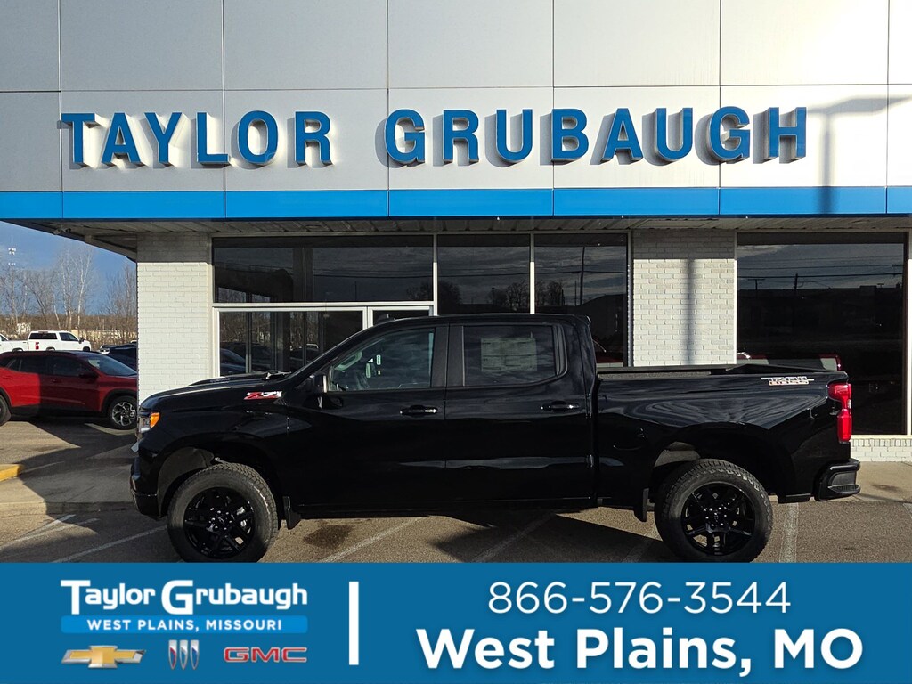 Black 2026 Chevrolet Silverado 1500 LT Trail Boss 4WD 10-Speed Automatic 3.0L I6 10-Speed Automatic, 4WD, Jet Black Leather, 10-Way Power Driver Seat w/Lumbar, 12.3 Multicolor Reconfigurable Digital Display, 120-Volt Bed Mounted Power Outlet, 120-Volt Interior Power Outlet, 2 USB Data Ports, 220 Amp Alternator, 4-Wheel Disc Brakes, 40/20/40 Front Split-Bench Seat, 6 Speakers, 6-Speaker Audio System, ABS brakes, Air Conditioning, All-Weather Floor Liner (LPO) (AAK), Alloy wheels, AM/FM radio: SiriusXM with 360L, Apple CarPlay/Android Auto, Auto High-beam Headlights, Auto-Locking Rear Differential, Automatic Emergency Braking, Automatic temperature control, Bluetooth® For Phone, Brake assist, Chevytec Spray-On Black Bedliner, Cloth Seat Trim, Color-Keyed Carpeting Floor Covering, Compass, Convenience Package, Convenience Package II, Deep-Tinted Glass, Delay-off headlights, Driver door bin, Driver vanity mirror, Dual front impact airbags, Dual front side impact airbags, Dual Rear USB Ports (Charge Only), Dual-Zone Automatic Climate Control, Electric Rear-Window Defogger, Electronic Cruise Control, Electronic Stability Control, Electronic Transmission Range Selector Shifter, Emergency communication system: OnStar, EZ Lift Power Lock & Release Tailgate, Floor Mounted Center Console, Following Distance Indicator, Forward Collision Alert, Front anti-roll bar, Front Bucket Seats, Front Center Armrest w/Storage, Front dual zone A/C, Front fog lights, Front LED Fog Lamps, Front Pedestrian Braking, Front reading lights, Front wheel independent suspension, Fully automatic headlights, HD Rear Vision Camera, Heated door mirrors, Heated Driver & Front Outboard Passenger Seats, Heated front seats, Heated Power-Adjustable Outside Mirrors, Heated Steering Wheel, Heated steering wheel, Heavy-Duty Air Filter, High Gloss Black Mirror Caps, Hill Descent Control, Hitch Guidance, Hitch Guidance w/Hitch View, Illuminated entry, In-Vehicle Trailering System App, Inside Rear-View Mirror w/Tilt, Integrated Trailer Brake Controller, IntelliBeam Automatic High Beam On/Off, Keyless Open & Start, Lane Keep Assist w/Lane Departure Warning, Leather Package, Leather-Appointed Front Seat Trim, LED Cargo Area Lighting, Low tire pressure warning, Manual Tilt/Telescoping Steering Column, Occupant sensing airbag, OnStar Services Capable, Outside temperature display, Overhead airbag, Overhead console, Panic alarm, Passenger door bin, Passenger vanity mirror, Performance Red Recovery Hooks, Power door mirrors, Power driver seat, Power Front Windows w/Driver Express Up/Down, Power Front Windows w/Passenger Express Down, Power Rear Windows w/Express Down, Power Sliding Rear Window w/Rear Defogger, Power steering, Power windows, Premium audio system: Chevrolet Infotainment 3 Premium, Premium Bose 7-Speaker Sound System, Protection Package, Radio data system, Radio: Chevrolet Infotainment 3 Premium System, Rear 60/40 Folding Bench Seat (Folds Up), Rear reading lights, Rear step bumper, Rear Wheelhouse Liners, Rear window defroster, Remote keyless entry, Remote Vehicle Starter System, Security system, Single Outlet Exhaust, SiriusXM w/360L Trial Subscription, Speed control, Speed-sensing steering, Split folding rear seat, Standard Tailgate, Steering Wheel Audio Controls, Steering wheel mounted audio controls, Suspension Package, Tachometer, Teen Driver, Telescoping steering wheel, Theft Deterrent System (Unauthorized Entry), Tilt steering wheel, Tire Pressure Monitoring System, Traction control, Trailering Package, Trip computer, Universal Home Remote, Up-Level Rear Seat w/Storage Package, Variably intermittent wipers, Voltmeter, Wheels: 20 x 9 High Gloss Black Painted Alum, Wi-Fi Hot Spot Capable, Wireless Charging, Wrapped Steering Wheel, 10-Speed Automatic, 4WD, Jet Black Leather.
