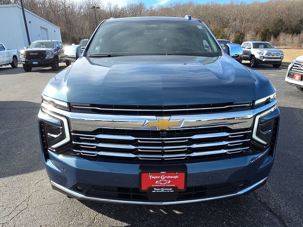 Lakeshore Blue Metallic 2026 Chevrolet Tahoe Premier 4WD 10-Speed Automatic with Overdrive 3.0L I6 Tahoe Premier, 4D Sport Utility, 3.0L I6, 10-Speed Automatic with Overdrive, 4WD, Lakeshore Blue Metallic, Black Leather, 2-Speed Active Electronic AutoTrac Transfer Case, Advanced Trailering Package, Blind Zone Steering Assist with Trailering, Dual-Pane Power Panoramic Sunroof, Hill Descent Control, Hitch View with Pan/Zoom Image Adjustment, Integrated Trailer Brake Controller, Max Trailering Package, Smart Trailer Integration Indicator, Sun and Tow Package, 10 Speakers, 1st and 2nd Row Color-Keyed Carpeted Floor Mats, 20 x 9 Polished Aluminum Wheels, 3-Spoke Wrapped Steering Wheel, 3.23 Rear Axle Ratio, 3rd Row 60/40 Power-Folding Split-Bench Seat, 3rd row seats: split-bench, 4-Way Power Driver Lumbar Seat Adjuster, 4-Way Power Front Passenger Lumbar Seat Adjuster, 4-Wheel Disc Brakes, 8-Way Power Driver Seat Adjuster, 8-Way Power Front Passenger Seat Adjuster, ABS brakes, Adaptive suspension, Air Conditioning, Alloy wheels, AM/FM radio: SiriusXM with 360L, Apple CarPlay/Android Auto, Auto High-beam Headlights, Auto-dimming door mirrors, Auto-Dimming Inside Rear-View Mirror, Auto-dimming Rear-View mirror, Auto-leveling suspension, Automatic temperature control, Bose 10-Speaker Centerpoint Surround Audio System Feature, Brake assist, Bright Front and Rear Door Sill Plates, Bumpers: body-color, Chrome Door Handles with Body-Color Strip, Chrome Mirror Caps, Color-Keyed Carpeting Floor Covering, Compass, Delay-off headlights, Driver and Front Passenger Heated and Ventilated Seats, Driver door bin, Driver vanity mirror, Dual Exhaust System, Dual front impact airbags, Dual front side impact airbags, Electronic Stability Control, Emergency communication system: OnStar and Chevrolet connected services capable, Exterior Parking Camera Rear, Floor Console, Four wheel independent suspension, Front anti-roll bar, Front Bucket Seats, Front Center Armrest, Front dual zone A/C, Front fog lights, Front LED Fog Lamps, Front reading lights, Frontal Driver and Outboard Passenger Airbags, Fully automatic headlights, Garage door transmitter, Heated 2nd Row Outboard Seats, Heated door mirrors, Heated Driver and Front Passenger Seats, Heated front seats, Heated rear seats, Heated Steering Wheel, Heated steering wheel, Illuminated entry, Interior Camera, Key Card, LED Headlamps with LED Daytime Running Lamps, LED Tail Lamps, Low tire pressure warning, Magnetic Ride Control Suspension, Memory seat, Memory Settings, Navigation system: Google built-in compatibility (select service plan required, terms and limitations apply), Occupant sensing airbag, Outside Heated Power-Adjustable Mirrors, Outside temperature display, Overhead airbag, Overhead console, Panic alarm, Passenger door bin, Passenger vanity mirror, Perforated Leather Seat Trim, Power door mirrors, Power driver seat, Power Liftgate, Power passenger seat, Power Release 2nd Row Bucket Seats, Power steering, Power Tilt and Telescopic Steering Column, Power windows, Premium audio system: Chevrolet Infotainment 3 Premium, Radio data system, Radio: 17.7 Diagonal Advanced Color LCD Display, Rain sensing wipers, Rear air conditioning, Rear anti-roll bar, Rear Power Liftgate, Rear reading lights, Rear window defroster, Rear window wiper, Remote keyless entry, Remote Start, Security system, Set of 4 Wheel Locks, SiriusXM with 360L Trial Subscription, Speed control, Speed-sensing steering, Split folding rear seat, Spoiler, Steering wheel memory, Steering wheel mounted audio controls, Tachometer, Telescoping steering wheel, Tilt steering wheel, Traction control, Trip computer, Turn signal indicator mirrors, Universal Home Remote, Variably intermittent wipers, Ventilated front seats, Voltmeter, Wheels: 22 x 9 Polished Aluminum, Wireless Phone Charging, Tahoe Premier, 4D Sport Utility, 3.0L I6, 10-Speed Automatic with Overdrive, 4WD, Lakeshore Blue Metallic,
