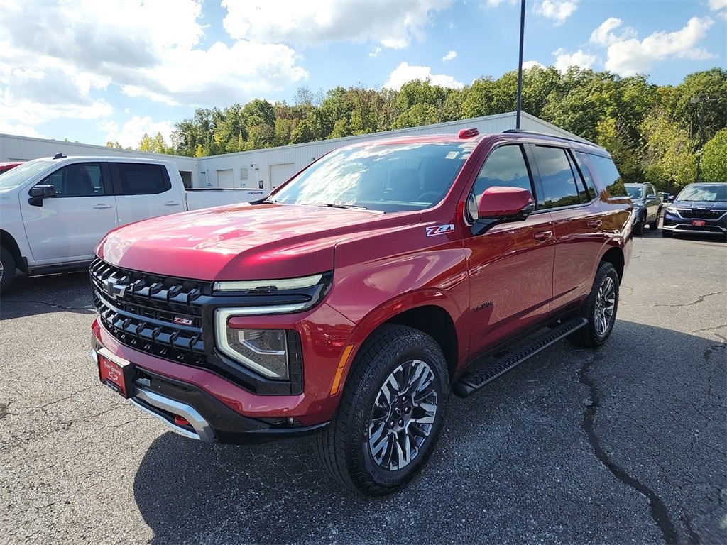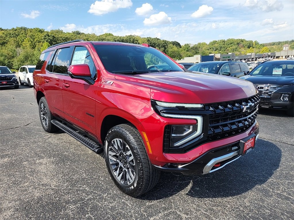 Radiant Red Tintcoat 2026 Chevrolet Tahoe Z71 4WD 10-Speed Automatic with Overdrive EcoTec3 5.3L V8 4WD, Black Leather, 1st & 2nd Row Color-Keyed Carpeted Floor Mats, 2-Speed Active Electronic AutoTrac Transfer Case, 2-Way Power Driver Lumbar Seat Adjuster, 2-Way Power Front Passenger Lumbar Seat Adjuster, 2nd Row Pwr Release 60/40 Split-Folding Bench Seat, 3-Spoke Wrapped Steering Wheel, 3.23 Rear Axle Ratio, 3rd Row 60/40 Power-Folding Split-Bench Seat, 3rd Row Manual 60/40 Split-Folding Bench Seats, 3rd row seats: split-bench, 4-Wheel Disc Brakes, 6 Speakers, 6-Speaker Audio System Feature, 8-Way Power Driver Seat Adjuster, 8-Way Power Front Passenger Seat Adjuster, ABS brakes, Air Conditioning, Alloy wheels, AM/FM radio: SiriusXM with 360L, Apple CarPlay/Android Auto, Auto High-beam Headlights, Auto-Dimming Inside Rear-View Mirror, Auto-dimming Rear-View mirror, Automatic temperature control, Black Tubular Assist Steps, Bose 10-Speaker Centerpoint Surround Audio Sys Ft, Brake assist, Bright Front & Rear Door Sill Plates, Bumpers: body-color, Color-Keyed Carpeting Floor Covering, Comfort Package, Compass, Delay-off headlights, Driver door bin, Driver vanity mirror, Dual Exhaust System, Dual front impact airbags, Dual front side impact airbags, Dual-Pane Power Panoramic Sunroof, Electronic Stability Control, Emergency communication system: OnStar and Chevrolet connected services capable, Exterior Parking Camera Rear, Floor Console w/Storage Area, Four wheel independent suspension, Front anti-roll bar, Front Bucket Seats, Front Center Armrest, Front dual zone A/C, Front fog lights, Front High-Approach Angle Fascia, Front LED Fog Lamps, Front reading lights, Frontal Driver & Outboard Passenger Airbags, Fully automatic headlights, Garage door transmitter, Heated 2nd Row Outboard Seats, Heated door mirrors, Heated Driver & Front Passenger Seats, Heated front seats, Heated Steering Wheel, Hill Descent Control, Illuminated entry, Interior Camera, Key Card, Leather-Appointed Seat Trim, LED Headlamps w/LED Daytime Running Lamps, LED Tail Lamps, License Plate Front Mounting Package, Low tire pressure warning, Memory seat, Memory Settings, Memory Settings for Driver, Navigation system: Google built-in compatibility (select service plan required, terms and limitations apply), Occupant sensing airbag, Outside Heated Power-Adjustable Mirrors, Outside temperature display, Overhead airbag, Overhead console, Panic alarm, Passenger door bin, Passenger vanity mirror, Power door mirrors, Power driver seat, Power Liftgate, Power passenger seat, Power Release 2nd Row Bucket Seats, Power steering, Power windows, Preferred Equipment Group 2Z7, Premium audio system: Chevrolet Infotainment 3 Premium, Premium Smooth Ride Suspension, Radio data system, Radio: 17.7 Diagonal Advanced Color LCD Display, Rain sensing wipers, Rear air conditioning, Rear anti-roll bar, Rear Power Liftgate, Rear reading lights, Rear seat center armrest, Rear window defroster, Rear window wiper, Red Horizontal-Mounted Recovery Hooks, Remote keyless entry, Remote Start, Security system, SiriusXM w/360L Trial Subscription, Speed control, Speed-sensing steering, Split folding rear seat, Spoiler, Steering wheel mounted audio controls, Tachometer, Telescoping steering wheel, Tilt steering wheel, Traction control, Trip computer, Universal Home Remote, USB Ports, Variably intermittent wipers, Voltmeter, Wheels: 20 x 9 Bright Machined Aluminum, Wireless Phone Charging, Z71 Exterior Features, 4WD, Black Leather.
