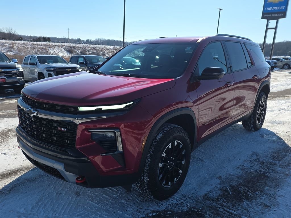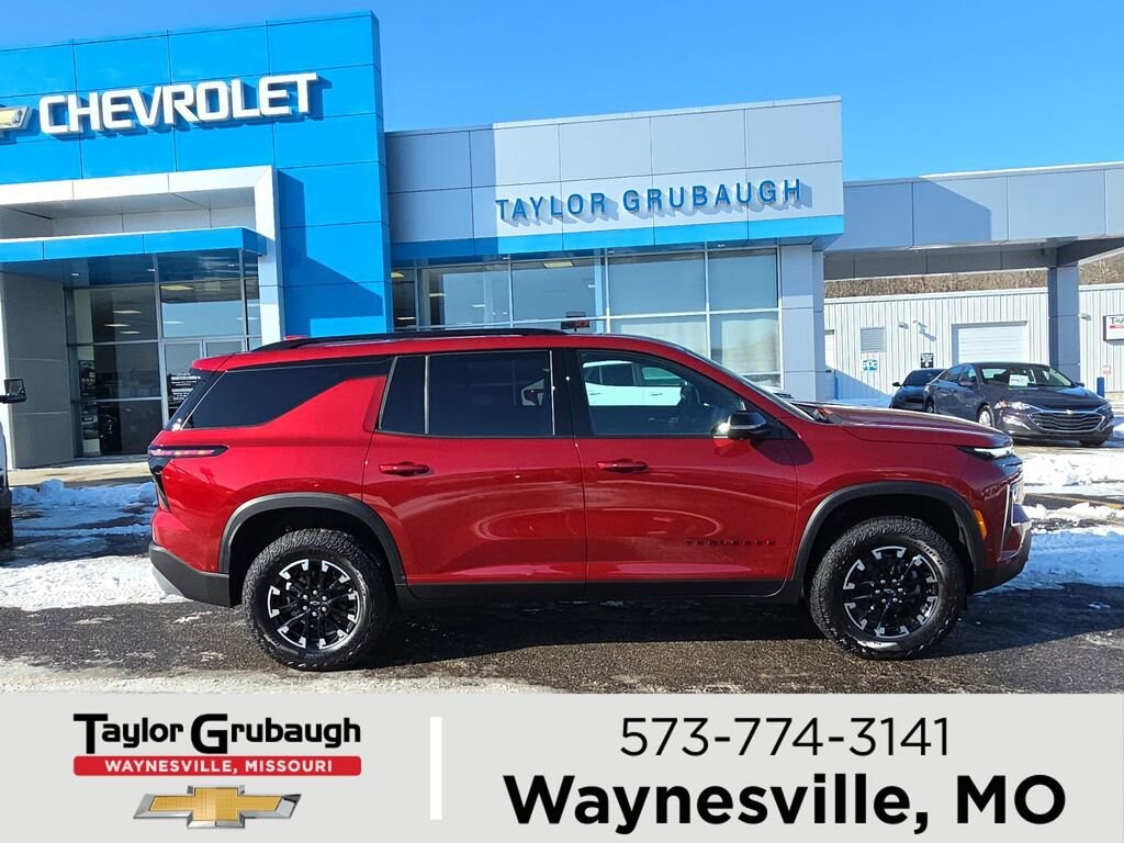 Radiant Red Tintcoat 2026 Chevrolet Traverse Z71 AWD 8-Speed Automatic 2.5L DOHC Traverse Z71, 4D Sport Utility, 2.5L DOHC, 8-Speed Automatic, AWD, Radiant Red Tintcoat, Z71 Jet Black With Torch Red Stitching Premium Synthetic, 3 Years OnStar One, Active Noise Cancellation, Bose Premium 12-Speaker Audio System Feature, Driver Attention Assist, Driver Confidence Package, Enhanced Automatic Parking Assist, Enhanced Driving Package, HD Surround Vision, Key Card, Navigation System, Power Outlet, Preferred Equipment Group 2Z7, Rear Camera Mirror, Rear Pedestrian Alert, Super Cruise, Traffic Sign Recognition, 3rd row seats: split-bench, 4-Way Manual Front Passenger Seat Adjuster, 4-Wheel Disc Brakes, 6 Speakers, 6-Speaker Audio System Feature, 8-Way Power Driver Seat Adjuster, ABS brakes, Air Conditioning, Alloy wheels, AM/FM radio: SiriusXM with 360L, Apple CarPlay/Android Auto, Auto High-beam Headlights, Automatic temperature control, Brake assist, Child-Seat-Sensing Airbag, Compass, Delay-off headlights, Driver door bin, Driver vanity mirror, Dual front impact airbags, Dual front side impact airbags, Electronic Stability Control, Emergency communication system: OnStar, Evotex Seat Trim, Four wheel independent suspension, Front anti-roll bar, Front Bucket Seats, Front Center Armrest, Front dual zone A/C, Front reading lights, Fully automatic headlights, Heated door mirrors, Heated Driver and Front Passenger Seats, Heated front seats, Heated steering wheel, Illuminated entry, Low tire pressure warning, Occupant sensing airbag, Outside temperature display, Overhead airbag, Overhead console, Panic alarm, Passenger door bin, Passenger vanity mirror, Power door mirrors, Power driver seat, Power Liftgate, Power steering, Power windows, Radio data system, Radio: : Audio System w/17.7 Diagonal Display, Rear air conditioning, Rear anti-roll bar, Rear reading lights, Rear window defroster, Rear window wiper, Remote keyless entry, Security system, SiriusXM with 360L Trial Subscription, Speed control, Speed-sensing steering, Spoiler, Steering wheel mounted audio controls, Tachometer, Telescoping steering wheel, Tilt steering wheel, Traction control, Trip computer, Turn signal indicator mirrors, Variably intermittent wipers, Voltmeter, Wheels: : 18 High Gloss Black Painted Aluminum, Traverse Z71, 4D Sport Utility, 2.5L DOHC, 8-Speed Automatic, AWD, Radiant Red Tintcoat, Z71 Jet Black With Torch Red Stitching Premium Synthetic, 3 Years OnStar One, Active Noise Cancellation, Bose Premium 12-Speaker Audio System Feature, Driver Attention Assist, Driver Confidence Package, Enhanced Automatic Parking Assist, Enhanced Driving Package, HD Surround Vision, Key Card, Navigation System, Power Outlet, Preferred Equipment Group 2Z7, Rear Camera Mirror, Rear Pedestrian Alert, Super Cruise, Traffic Sign Recognition.