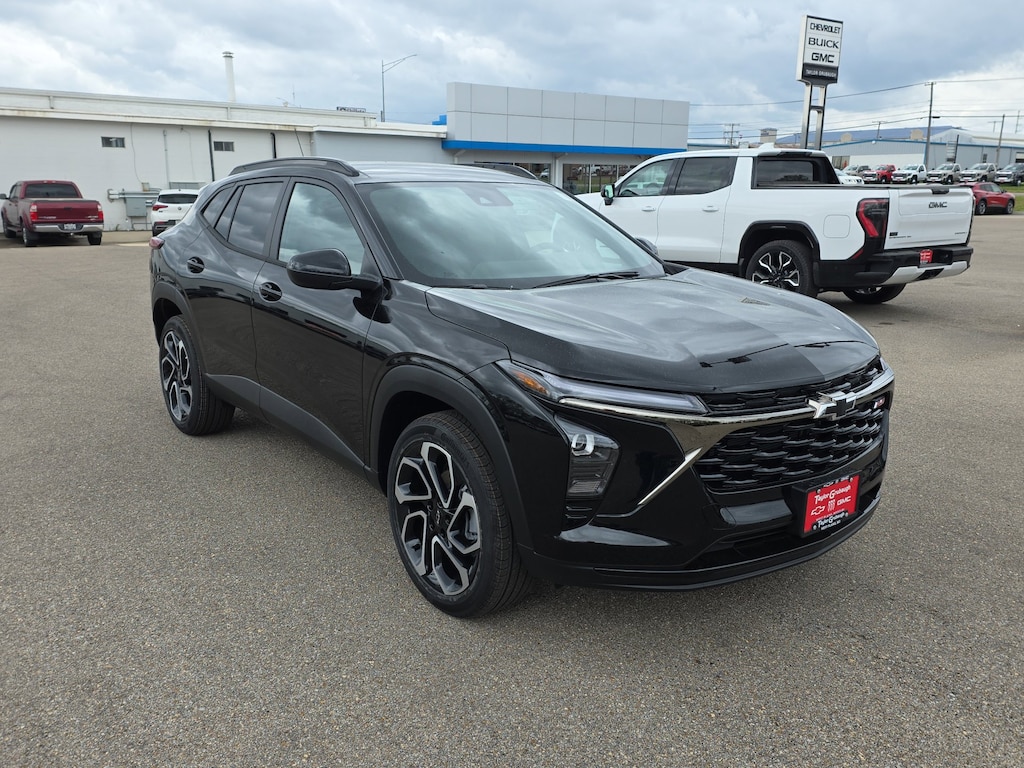 Mosaic Black Metallic 2026 Chevrolet Trax 2RS FWD 6-Speed Automatic ECOTEC 1.2L Turbo 2-Way Adjustable Front Head Restraints, 2-Way Power Driver Lumbar Seat Adjuster, 3.50 Final Drive Axle Ratio, 4-Way Manual Front Passenger Seat Adjuster, 4-Wheel Disc Brakes, 6 Speakers, 6-Speaker Audio System Feature, 8-Way Power Driver Seat Adjuster, ABS brakes, Adaptive Cruise Control, Air Conditioning, Alloy wheels, AM/FM radio: SiriusXM, Auto High-beam Headlights, Automatic temperature control, Brake assist, Bumpers: body-color, Compass, Delay-off headlights, Driver Confidence Package, Driver door bin, Driver vanity mirror, Dual front impact airbags, Dual front side impact airbags, Electronic Stability Control, Emergency communication system: OnStar One Essentials, Evotex Seat Trim, Exterior Parking Camera Rear, Front anti-roll bar, Front Bucket Seats, Front Center Armrest, Front reading lights, Front wheel independent suspension, Fully automatic headlights, Heated door mirrors, Heated Driver and Front Passenger Seats, Heated front seats, Heated steering wheel, Illuminated entry, Lane Change Alert with Side Blind Zone Alert, Leather steering wheel, Low tire pressure warning, Occupant sensing airbag, Outside temperature display, Overhead airbag, Overhead console, Panic alarm, Passenger door bin, Passenger vanity mirror, Power door mirrors, Power driver seat, Power steering, Power windows, Premium audio system: Chevrolet Infotainment 3, Radio data system, Radio: AM/FM Stereo Audio System, Rear Cross Traffic Alert, Rear Park Assist, Rear window defroster, Rear window wiper, Remote keyless entry, Security system, SiriusXM Trial Subscription, Speed control, Split folding rear seat, Spoiler, Sport steering wheel, Steering wheel mounted audio controls, Tachometer, Telescoping steering wheel, Tilt steering wheel, Traction control, Trip computer, Variably intermittent wipers, Wheels: 19 Black-Painted Machined Aluminum, Wireless Apple CarPlay/Wireless Android Auto.