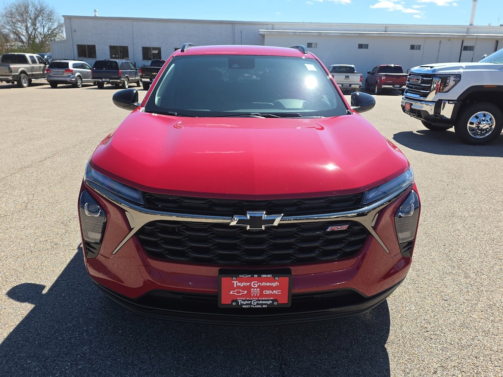 Apex Red 2026 Chevrolet Trax 2RS FWD 6-Speed Automatic ECOTEC 1.2L Turbo 2-Way Adjustable Front Head Restraints, 2-Way Power Driver Lumbar Seat Adjuster, 3.50 Final Drive Axle Ratio, 4-Way Manual Front Passenger Seat Adjuster, 4-Wheel Disc Brakes, 6 Speakers, 6-Speaker Audio System Feature, 8-Way Power Driver Seat Adjuster, ABS brakes, Adaptive Cruise Control, Air Conditioning, Alloy wheels, AM/FM radio: SiriusXM, Auto High-beam Headlights, Automatic temperature control, Brake assist, Bumpers: body-color, Compass, Delay-off headlights, Driver Confidence Package, Driver door bin, Driver vanity mirror, Dual front impact airbags, Dual front side impact airbags, Electronic Stability Control, Emergency communication system: OnStar One Essentials, Evotex Seat Trim, Exterior Parking Camera Rear, Front anti-roll bar, Front Bucket Seats, Front Center Armrest, Front reading lights, Front wheel independent suspension, Fully automatic headlights, Heated door mirrors, Heated Driver and Front Passenger Seats, Heated front seats, Heated steering wheel, Illuminated entry, Lane Change Alert with Side Blind Zone Alert, Leather steering wheel, Low tire pressure warning, Occupant sensing airbag, Outside temperature display, Overhead airbag, Overhead console, Panic alarm, Passenger door bin, Passenger vanity mirror, Power door mirrors, Power driver seat, Power steering, Power windows, Premium audio system: Chevrolet Infotainment 3, Radio data system, Radio: AM/FM Stereo Audio System, Rear Cross Traffic Alert, Rear Park Assist, Rear window defroster, Rear window wiper, Remote keyless entry, Security system, SiriusXM Trial Subscription, Speed control, Split folding rear seat, Spoiler, Sport steering wheel, Steering wheel mounted audio controls, Tachometer, Telescoping steering wheel, Tilt steering wheel, Traction control, Trip computer, Variably intermittent wipers, Wheels: 19 Black-Painted Machined Aluminum, Wireless Apple CarPlay/Wireless Android Auto.