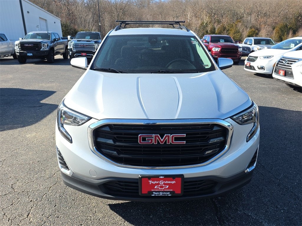 Remote Start, Bluetooth, Rear Camera, My Link Radio, 2 USB Data Ports w/Auxiliary Input Jack, 3.47 Axle Ratio, 4-Way Manual Driver's Seat, 4-Way Manual Front Passenger Seat, 4-Wheel Disc Brakes, 6 Speakers, 6-Speaker Audio System Feature, 8-Way Power Driver Seat Adjuster, ABS brakes, Adaptive Cruise Control - Camera, Air Conditioning, All-Weather Cargo Mat (LPO), All-Weather Floor Mats, Alloy wheels, AM/FM radio, Apple CarPlay/Android Auto, Auto High-beam Headlights, Auto-dimming Rear-View mirror, Bluetooth® For Phone, Brake assist, Bumpers: body-color, Compass, Delay-off headlights, Driver & Front Passenger Heated Seats, Driver Alert Package I, Driver Convenience Package, Driver door bin, Driver vanity mirror, Dual front impact airbags, Dual front side impact airbags, Dual-Zone Automatic Climate Control, Electronic Stability Control, Emergency communication system: OnStar and GMC connected services capable, Exterior Parking Camera Rear, Four wheel independent suspension, Front anti-roll bar, Front Bucket Seats, Front Center Armrest, Front reading lights, Fully automatic headlights, Heated door mirrors, High-Intensity Discharge Headlights, Illuminated entry, Interior Protection Package (LPO), Lane Change Alert w/Side Blind Zone Alert, License Plate Front Mounting Package, Low tire pressure warning, Occupant sensing airbag, Outside Heated Power-Adjustable Mirrors, Outside temperature display, Overhead airbag, Overhead console, Panic alarm, Passenger door bin, Passenger vanity mirror, Power door mirrors, Power Driver Lumbar Control, Power Programmable Rear Liftgate, Power steering, Power windows, Preferred Equipment Group 3SA, Premium Cloth Seat Trim, Radio data system, Radio: GMC Infotainment Audio System w/7 Display, Rear anti-roll bar, Rear Cross-Traffic Alert, Rear Park Assist, Rear seat center armrest, Rear window defroster, Rear window wiper, Remote keyless entry, Remote Start, Roof-Mounted Luggage Rack Black Side Rails, Safety Alert Seat, Security system, Speed control, Speed-sensing steering, Split folding rear seat, Spoiler, Steering wheel mounted audio controls, Tachometer, Telescoping steering wheel, Tilt steering wheel, Traction control, Trip computer, Variably intermittent wipers, Wheels: 17 x 7 Silver Painted Aluminum. Quicksilver Metallic 2020 GMC Terrain SLE 1.5L DOHC 9-Speed Automatic FWD 4D Sport Utility