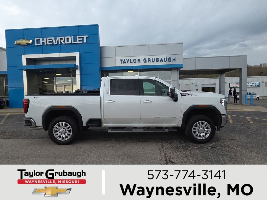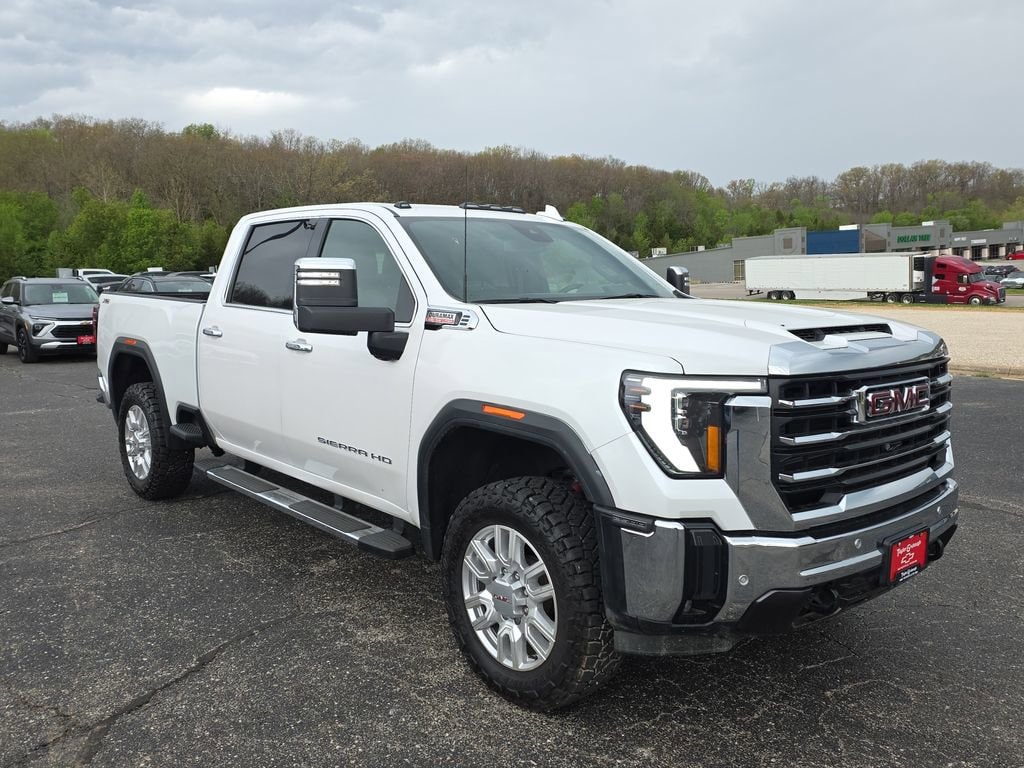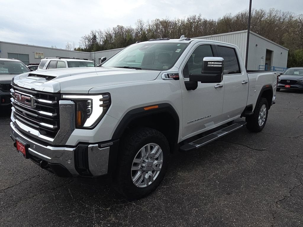 Leather, Remote Start, Bluetooth, Rear Camera, One Owner, No Accident, Heated Seats, Apple CarPlay, Android Auto, Lane Departure Warning, Front Collision Alert, Rear Park Assist, Sierra 2500HD SLT, 4D Crew Cab, Duramax 6.6L V8 Turbodiesel, 10-Speed Automatic, 4WD, White Frost Tricoat, Dark Walnut/Slate Leather, 120-Volt Bed Mounted Power Outlet, 120-Volt Instrument Panel Power Outlet, 2 Charge-Only Rear USB Ports, 2 Charge/Data USB Ports, 2 Charge/Data USB Ports Inside Center Console, 2-Speed Active Transfer Case, 20 Machined Aluminum Wheels, 6-Speaker Audio System Feature, 6 Rectangular Chromed Tubular Assist Steps, Adaptive Cruise Control, All-Weather Floor Liners (LPO), Bed View Camera w/2 Trailer Camera Provisions, Bose Premium 7-Speaker Sound System, Chrome Surround Grille w/Chrome Insert Bars, Deep-Tinted Glass, Electric Rear-Window Defogger, Floor-Mounted Center Console, Front Bucket Seats, Front Rain-Sensing Wipers, GMC Connected Access Capable, Gooseneck/5th Wheel Prep Package, HD Rear Vision Camera Delete, HD Surround Vision, Heated 2nd Row Outboard Seats, Heated Driver & Front Outboard Passenger Seats, Hill Descent Control, Integrated Trailer Brake Controller, Keyless Open & Start, LED Cargo Area Lighting, LED Smoked Amber Roof Marker Lamps, Manual Tilt-Wheel/Telescoping Steering Column, Off-Road Suspension, OnStar & GMC Connected Services Capable, Power Front Passenger Windows w/Express Up/Down, Power Sliding Rear Window w/Defogger, Preferred Equipment Group 4SA, Push Button Start, Rear Cross Traffic Alert, Rear Wheelhouse Liners, Remote Vehicle Starter System, Safety Alert Seat, Sierra HD Pro Safety Plus Package, SiriusXM w/360L, SLT Convenience Package, SLT Preferred Package, SLT Premium Package, Spray-On Bedliner, Steering Wheel Audio Controls, Suspension Package, Trailer Cam Provisions & Trailer Viewing Software, Trailer Side Blind Zone Alert, Ultrasonic Front & Rear Park Assist, Unauthorized Entry Theft-Deterrent System, Universal Home Remote, Ventilated Driver & Front Passenger Seats, Wireless Charging, Wireless Phone Projection, X31 Off-Road & Protection Package, X31 Off-Road Package, 10-Way Power Driver Seat Adjuster w/Lumbar, 10-Way Power Passenger Seat Adjuster w/Lumbar, 18 Machined Aluminum Wheels, 220-Amp Alternator, 4-Wheel Disc Brakes, 6 Speakers, ABS brakes, Air Conditioning, Alloy wheels, AM/FM radio: SiriusXM with 360L, Apple CarPlay/Android Auto, Auto High-beam Headlights, Auto-dimming door mirrors, Auto-dimming Rear-View mirror, Automatic Emergency Braking, Automatic temperature control, Brake assist, Buckle to Drive, Bumpers: chrome, Compass, Delay-off headlights, Driver door bin, Driver Memory, Driver vanity mirror, Dual front impact airbags, Dual front side impact airbags, Electronic Stability Control, Engine Block Heater, Exhaust Brake, Following Distance Indicator, Forward Collision Alert, Front 40/20/40 Split-Bench Seats, Front anti-roll bar, Front Center Armrest w/Storage, Front dual zone A/C, Front fog lights, Front License Plate Kit, Front Pedestrian Braking, Front reading lights, Front wheel independent suspension, Fully automatic headlights, Heated door mirrors, Heated front seats, Heated steering wheel, Heavy-Duty 80 Amp Battery, Hitch Guidance w/Hitch View, Illuminated entry, In-Vehicle Trailering System App, IntelliBeam Automatic High Beam On/Off, Lane Departure Warning System, Low tire pressure warning, Memory seat, Occupant sensing airbag, Outside temperature display, Overhead airbag, Overhead console, Panic alarm, Passenger door bin, Passenger vanity mirror, Perf Leather-Appointed Front Outboard Seat Trim, Pickup Box, Power door mirrors, Power driver seat, Power passenger seat, Power steering, Power windows, Premium audio system: Premium GMC Infotainment System, Radio: AM/FM w/Premium GMC Infotainment System, Rain sensing wipers, Rear reading lights, Rear seat center armrest, Rear step bumper, Rear window defroster, Remote keyless