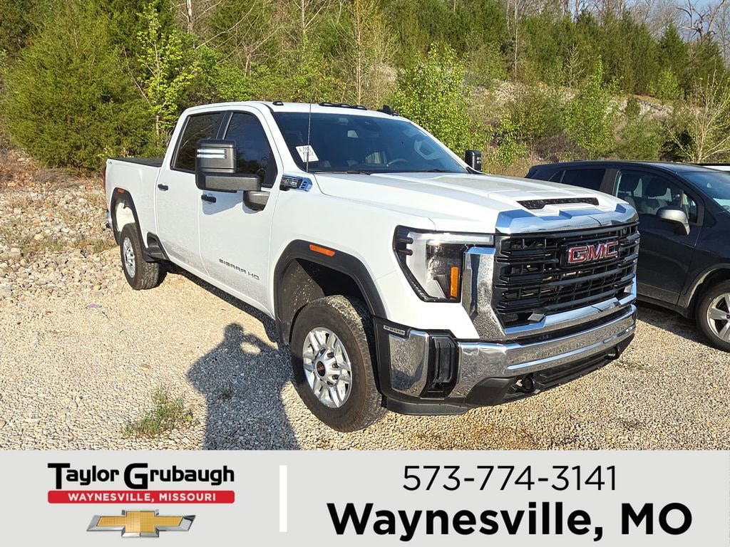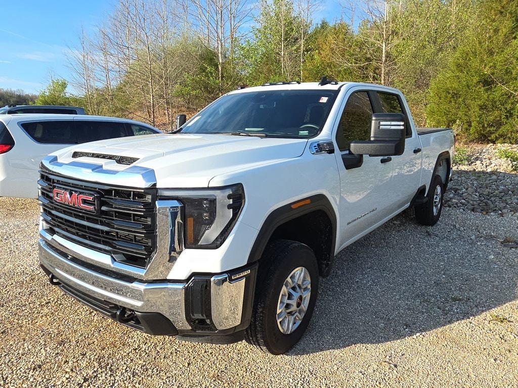 Bluetooth, Rear Camera, Sierra 2500HD Pro, 4D Crew Cab, 6.6L V8, 10-Speed Automatic, 4WD, Summit White, Jet Black Vinyl, 120-Volt Bed Mounted Power Outlet, 120-Volt Instrument Panel Power Outlet, 17 Machined Aluminum Wheels, 2 Charge-Only Rear USB Ports, 2 Charge/Data USB Ports, 2-Speed Electronic Shift Transfer Case, 3.73 Rear Axle Ratio, 4-Way Manual Driver Seat Adjuster, 4-Way Manual Passenger Seat Adjuster, 4-Wheel Disc Brakes, 6 Speakers, 6-Speaker Audio System Feature, ABS brakes, Air Conditioning, AM/FM radio, Apple CarPlay/Android Auto, Auto High-beam Headlights, Automatic Emergency Braking, Brake assist, Buckle to Drive, Bumpers: chrome, Chrome Grille w/Flat Black Grille Insert Bars, Compass, Convenience Package, Deep-Tinted Glass, Delay-off headlights, Driver door bin, Dual front impact airbags, Dual front side impact airbags, Electric Rear-Window Defogger, Electronic Stability Control, Emergency communication system: OnStar, EZ Lift Power Lock & Release Tailgate, Following Distance Indicator, Forward Collision Alert, Front 40/20/40 Split-Bench Seats, Front anti-roll bar, Front Center Armrest w/Storage, Front License Plate Kit, Front Pedestrian Braking, Front reading lights, Front wheel independent suspension, Fully automatic headlights, Gooseneck/5th Wheel Prep Package, Heavy-Duty 80 Amp Battery, Illuminated entry, IntelliBeam Automatic High Beam On/Off, Lane Departure Warning System, LED Cargo Area Lighting, LED Smoked Amber Roof Marker Lamps, Low tire pressure warning, Occupant sensing airbag, OnStar Services Capable, Outside Power-Adjustable Black Mirrors, Outside temperature display, Overhead airbag, Overhead console, Panic alarm, Passenger door bin, Passenger vanity mirror, Pickup Box, Power steering, Power windows, Preferred Equipment Group 1SA, Push Button Start, Radio: AM/FM w/GMC Infotainment System, Rear reading lights, Rear step bumper, Remote Keyless Entry, Remote keyless entry, Solar Absorbing Tinted Glass, Speed control, Split folding rear seat, Spray-On Pickup Bedliner, Suspension Package, Tachometer, Tilt steering wheel, Traction control, Trip computer, Variably intermittent wipers, Vinyl Seat Trim, Voltmeter, Wheels: 17 Silver Painted Steel, Wireless Phone Projection, Sierra 2500HD Pro, 4D Crew Cab, 6.6L V8, 10-Speed Automatic, 4WD, Summit White, Jet Black Vinyl. Summit White 2025 GMC Sierra 2500HD Pro 6.6L V8 10-Speed Automatic 4WD 4D Crew Cab