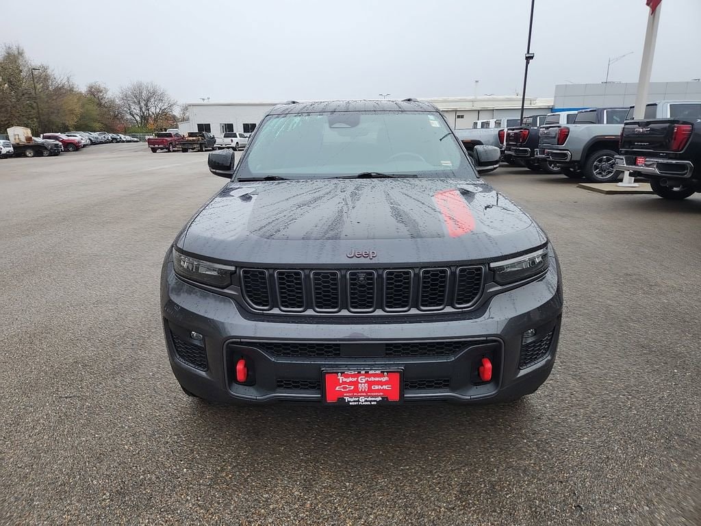 Leather, Remote Start, Bluetooth, Rear Camera, Grand Cherokee Trailhawk, 4D Sport Utility, 3.6L V6 24V VVT, 8-Speed Automatic, 4WD, Baltic Gray Metallic Clearcoat, Global Black Leather, 10 Speakers, 3.45 Rear Axle Ratio, 4-Wheel Disc Brakes, 4G LTE Wi-Fi Hotspot, ABS brakes, Adaptive suspension, Air Conditioning, Alloy wheels, AM/FM radio: SiriusXM with 360L, Anti-whiplash front head restraints, Apple CarPlay, Audio memory, Auto High-beam Headlights, Auto-dimming door mirrors, Auto-dimming Rear-View mirror, Auto-leveling suspension, Automatic temperature control, Brake assist, Bumpers: body-color, Capri Leather/Suede Seats, Compass, Connected Travel & Traffic Services, Connectivity - US/Canada, Delay-off headlights, Disassociated Touchscreen Display, Driver door bin, Driver vanity mirror, Dual front impact airbags, Dual front side impact airbags, Electronic Stability Control, Emergency communication system, For Details, Visit DriveUconnect.com, For More Info, Call 800-643-2112, Four wheel independent suspension, Front anti-roll bar, Front Bucket Seats, Front Center Armrest w/Storage, Front dual zone A/C, Front fog lights, Front reading lights, Fully automatic headlights, Garage door transmitter, Global Telematics Box Module (TBM), Google Android Auto, GPS Antenna Input, GPS Navigation, HD Radio, Heated door mirrors, Heated front seats, Heated rear seats, Heated steering wheel, Illuminated entry, Integrated Center Stack Radio, Integrated Voice Command w/Bluetooth, Knee airbag, Leather Shift Knob, Leather steering wheel, Low tire pressure warning, Memory seat, Navigation System, Normal Duty Suspension, Occupant sensing airbag, Outside temperature display, Overhead airbag, Overhead console, Panic alarm, Passenger door bin, Passenger vanity mirror, Power door mirrors, Power driver seat, Power Liftgate, Power passenger seat, Power steering, Power windows, Quick Order Package 22J, Radio data system, Radio: Uconnect 5 Nav w/8.4 Display, Rear anti-roll bar, Rear reading lights, Rear seat center armrest, Rear window defroster, Rear window wiper, Remote keyless entry, Roof rack: rails only, Security system, SiriusXM Radio Service, SiriusXM Satellite Radio, SiriusXM w/360L, Speed control, Speed-Sensitive Wipers, Split folding rear seat, Spoiler, Steering wheel mounted audio controls, Tachometer, Telescoping steering wheel, Tilt steering wheel, Traction control, Trip computer, Turn signal indicator mirrors, USB Host Flip, Variably intermittent wipers, Ventilated front seats, Voltmeter, Wheels: 18 x 8 Machined Face/Painted Aluminum, Grand Cherokee Trailhawk, 4D Sport Utility, 3.6L V6 24V VVT, 8-Speed Automatic, 4WD, Baltic Gray Metallic Clearcoat, Global Black Leather. Baltic Gray Metallic Clearcoat 2022 Jeep Grand Cherokee Trailhawk 3.6L V6 24V VVT 8-Speed Automatic 4WD 4D Sport UtilityRecent Arrival! 19/26 City/Highway MPGView our entire inventory at https://www.grubaughchevy.com/ and be sure to call 573-774-3141 to schedule your test drive.