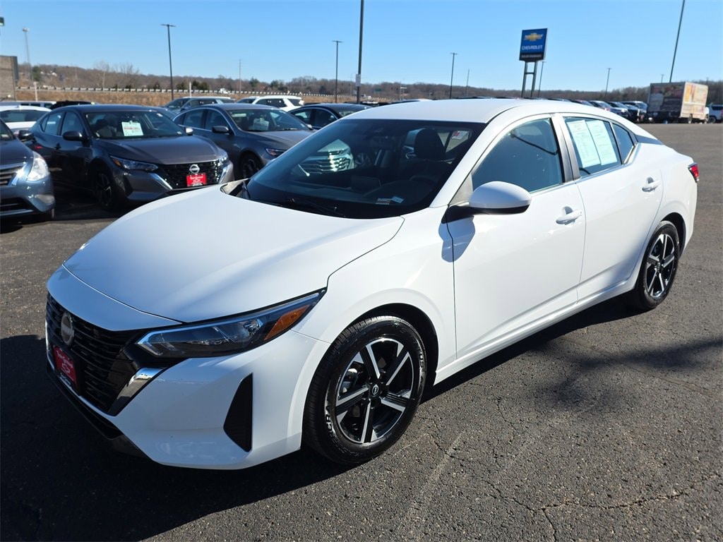 CVT with Xtronic, Charcoal Cloth, 16 Alloy Wheels, 4-Wheel Disc Brakes, 6 Speakers, ABS brakes, Air Conditioning, Alloy wheels, AM/FM radio: SiriusXM, Auto High-beam Headlights, Blind Spot Warning, Brake assist, Bumpers: body-color, Carpeted Floor Mats w/Trunk Mat, Delay-off headlights, Driver door bin, Driver vanity mirror, Dual front impact airbags, Dual front side impact airbags, Electronic Stability Control, Four wheel independent suspension, Front anti-roll bar, Front Bucket Seats, Front Center Armrest, Front reading lights, Fully automatic headlights, Illuminated entry, Knee airbag, Leather steering wheel, Low tire pressure warning, NissanConnect featuring Apple CarPlay and Android Auto, Occupant sensing airbag, Outside temperature display, Overhead airbag, Overhead console, Panic alarm, Passenger door bin, Passenger vanity mirror, Power door mirrors, Power steering, Power windows, Radio data system, Radio: AM/FM w/RDS/MP3/Aux-In, Rear anti-roll bar, Rear Parking Sensors, Rear side impact airbag, Rear window defroster, Remote keyless entry, Security system, Speed control, Speed-sensing steering, Split folding rear seat, Steering wheel mounted audio controls, Tachometer, Technical Spec Change 2, Telescoping steering wheel, Tilt steering wheel, Traction control, Trip computer, Upgraded Cloth Seat Trim, Variably intermittent wipers, CVT with Xtronic, Charcoal Cloth. Fresh Powder 2024 Nissan Sentra SV 2.0L I4 DOHC CVT with Xtronic FWD 4D Sedan