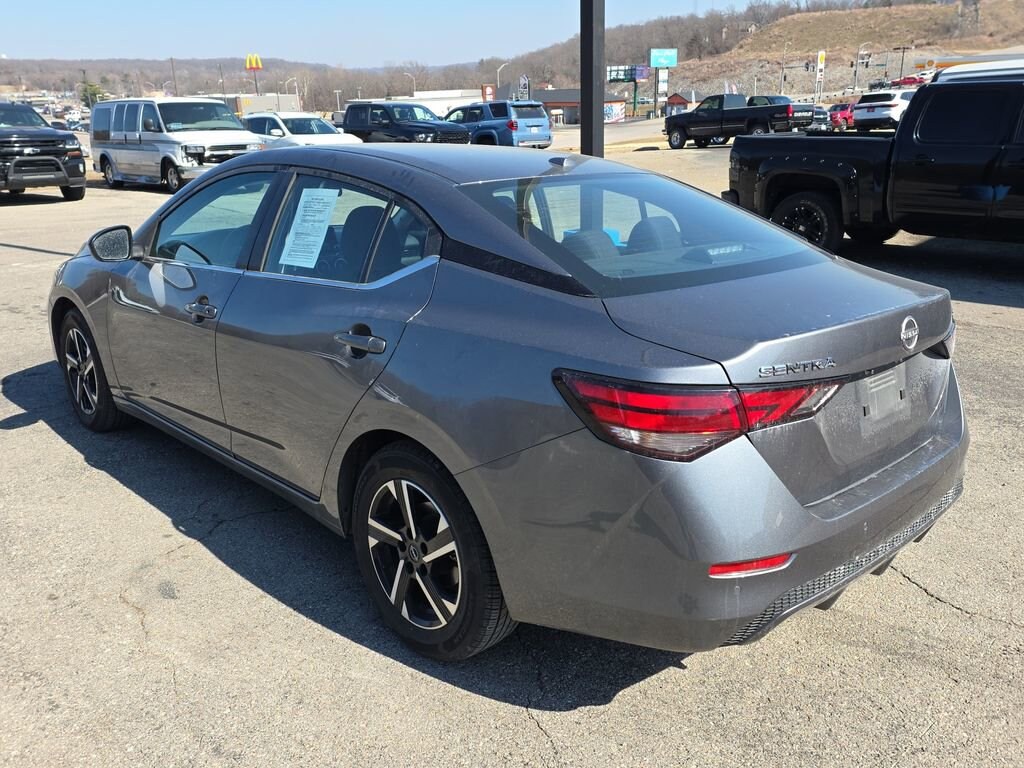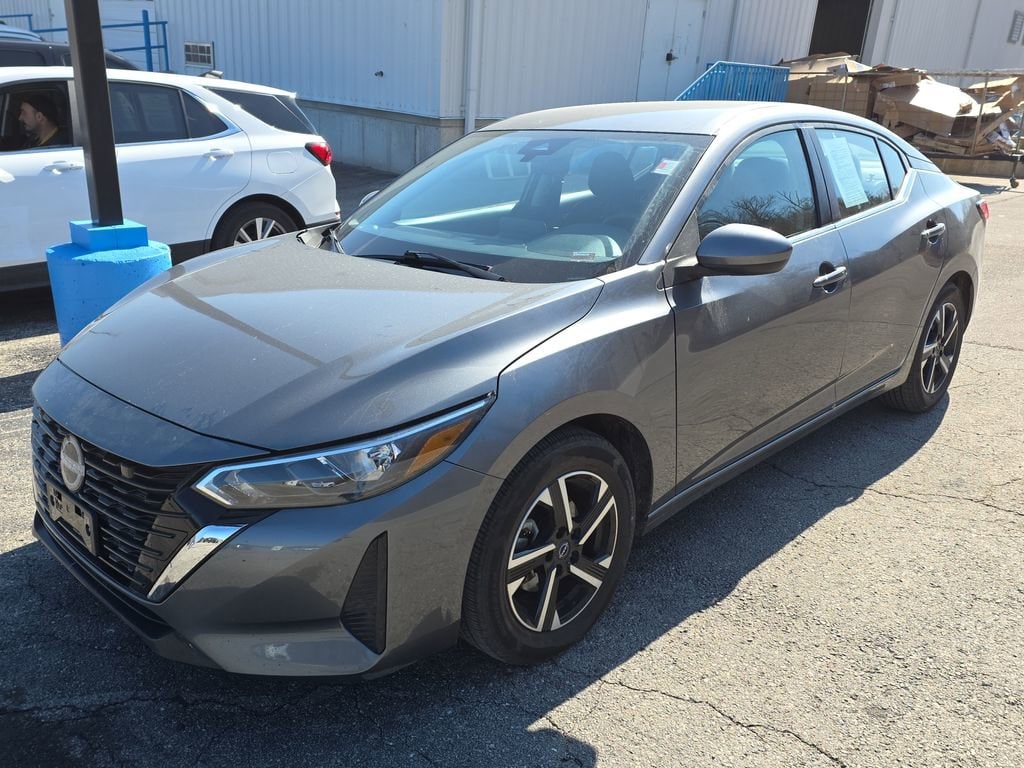 CVT with Xtronic, Charcoal Cloth, 16 Alloy Wheels, 4-Wheel Disc Brakes, 6 Speakers, ABS brakes, Air Conditioning, Alloy wheels, AM/FM radio: SiriusXM, Auto High-beam Headlights, Blind Spot Warning, Brake assist, Bumpers: body-color, Carpeted Floor Mats w/Trunk Mat, Delay-off headlights, Driver door bin, Driver vanity mirror, Dual front impact airbags, Dual front side impact airbags, Electronic Stability Control, Four wheel independent suspension, Front anti-roll bar, Front Bucket Seats, Front Center Armrest, Front reading lights, Fully automatic headlights, Illuminated entry, Knee airbag, Leather steering wheel, Low tire pressure warning, NissanConnect featuring Apple CarPlay and Android Auto, Occupant sensing airbag, Outside temperature display, Overhead airbag, Overhead console, Panic alarm, Passenger door bin, Passenger vanity mirror, Power door mirrors, Power steering, Power windows, Radio data system, Radio: AM/FM w/RDS/MP3/Aux-In, Rear anti-roll bar, Rear Parking Sensors, Rear side impact airbag, Rear window defroster, Remote keyless entry, Security system, Speed control, Speed-sensing steering, Split folding rear seat, Steering wheel mounted audio controls, Tachometer, Technical Spec Change 2, Telescoping steering wheel, Tilt steering wheel, Traction control, Trip computer, Upgraded Cloth Seat Trim, Variably intermittent wipers, CVT with Xtronic, Charcoal Cloth. Gun Metallic 2024 Nissan Sentra SV 2.0L I4 DOHC CVT with Xtronic FWD 4D Sedan